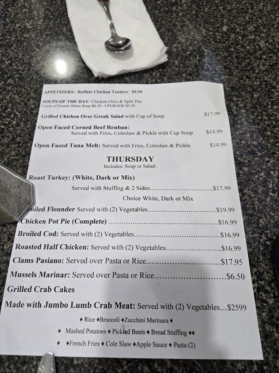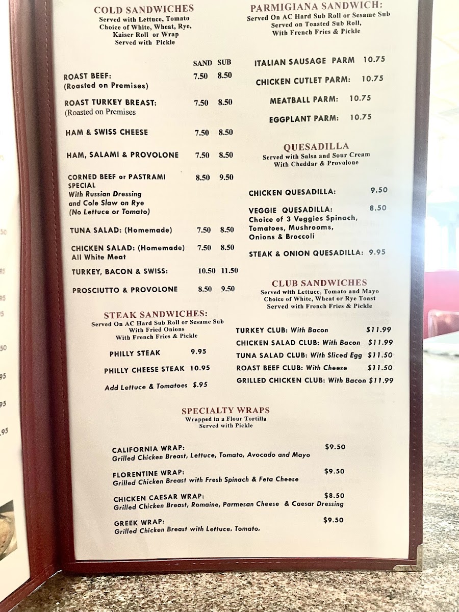 As the day unfolds, the menu shifts naturally toward satisfying sandwiches and wraps, like the turkey club, cheesesteak, or a flavorful Beef and Lamb Gyro, all accompanied by comforting sides such as Disco Fries or fresh homemade soups, including French Onion Soup. These dishes make the diner a friendly spot for a midday break or casual evening meal.