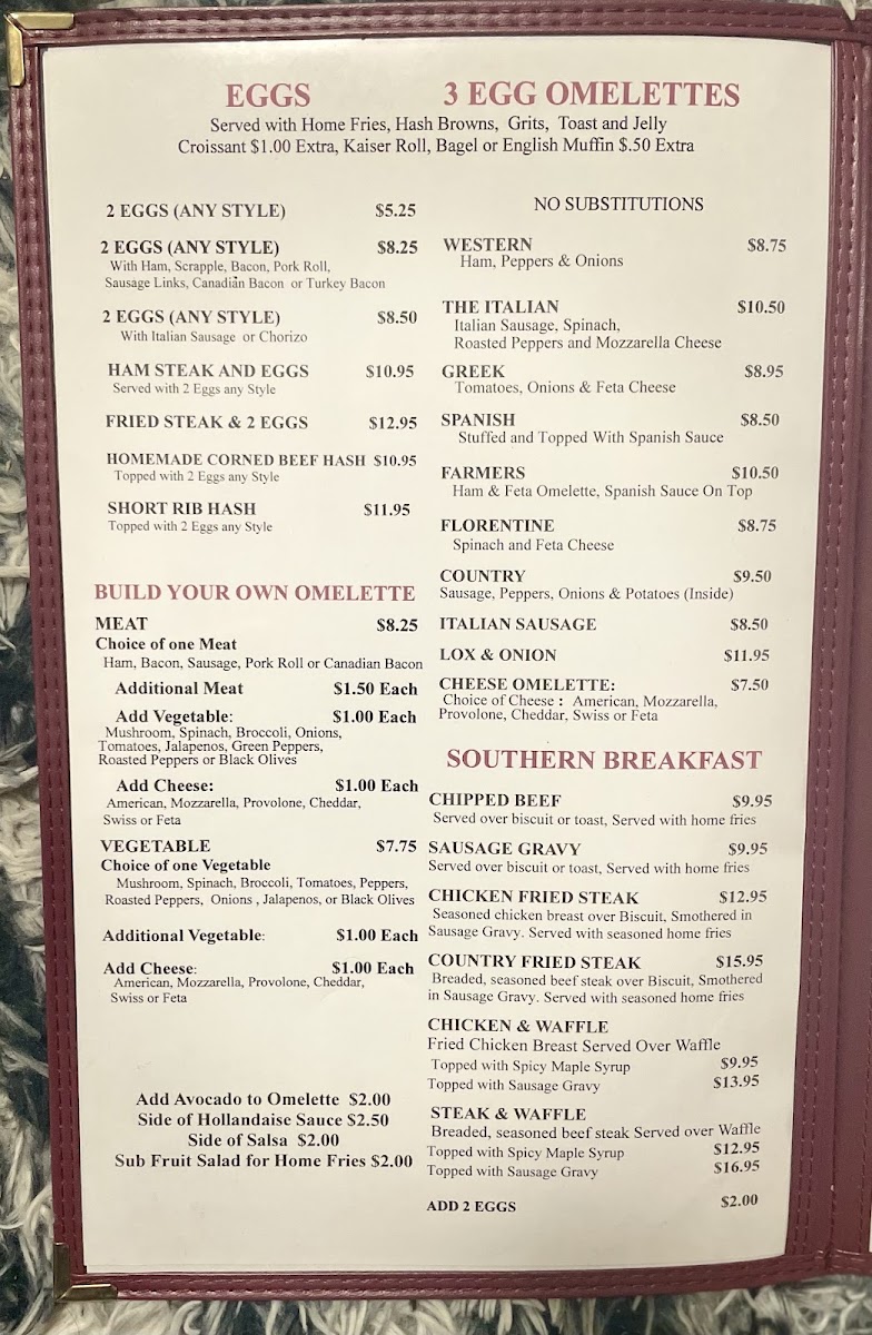 The menu at Northfield Diner offers a balanced blend of classic diner comfort with European and Greek influences, perfect for anytime dining. Whether you're stopping by for a relaxed breakfast, a casual lunch, or a laid-back dinner, you’ll find dishes that feel familiar yet thoughtfully prepared.